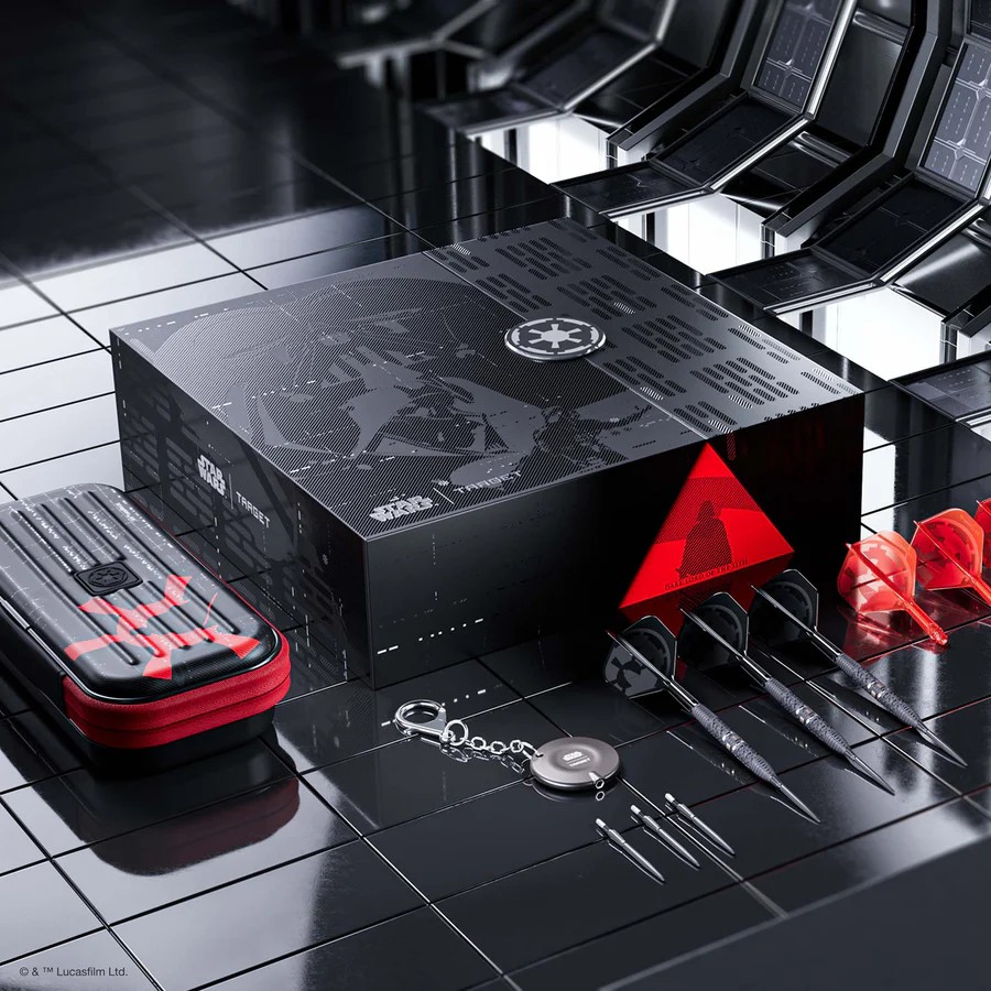 Experience the STAR WARS™ | TARGET Darts TOR Dartboard & Millennium Falcon Surround Bundle, created in collaboration with The Walt Disney Company. Inspired by the Falcon’s cockpit, the surround frames your board with a cinematic view out into the galaxy, while the TOR dartboard beneath delivers competition-level performance. The TOR board is constructed using 215-MDG premium Madagascan sisal for exceptional self-healing and long-lasting play. Its sanded surface produces a flawless finish and bold, high-contrast colourways for improved visibility and accuracy. A stainless steel thin wire system, 60% thinner than traditional wire, reduces bounce-outs and increases scoring potential. The Peak-Fix lock and level system (with adjustable feet) ensures secure mounting on any surface, even uneven walls, and the modern 36XTEN rotational number ring allows 10 smooth rotations at 36° per turn to extend board life and maintain a professional appearance. The themed surround is crafted from high-density polymer with a ribbed back profile that provides active reflex protection for walls and darts. Designed to fit securely around the TOR with no wall fixings required. This official STAR WARS x Target home setup is a visual nod to the Millennium Falcon’s screen moments and the thrill of taking aim under the stars. Harness the power of the dark side with the STAR WARS™ | TARGET Darts Darth Vader 95% Tungsten Steel Tip Darts, forged in collaboration with the Walt Disney Company. This premium dart set combines professional-level performance with the iconic presence of one of the galaxy’s most feared Sith Lords. The 95% tungsten barrels are precision-milled with detailed Darth Vader engravings, combining intricate machine cuts with durable black PVD performance coating for unmatched grip, control, and long-lasting performance. Engineered for balance, each barrel reflects both artistry and advanced darting innovation. Fitted with 30mm Swiss Storm Points in black, the darts deliver a flush, one-piece feel on the board. The patented Swiss Point system allows players to customise and switch points in seconds, and this set also includes an additional set of 35mm Swiss Storm Points for varied setups. A premium black Swiss keyring tool is included for effortless point changes. The setup continues with integrated K-Flex shafts and flights, with an official printed design. Providing two sets in Red No.2 and Black No.6, easily customise the dart and change the K-Flex with the 2BA thread. K-Flex are engineered from lightweight yet highly durable polymer, providing reduced chance of flight bounce outs and long-lasting stability. Completing the set is the Darth Vader Special Edition Takoma Wallet, crafted with a rigid EVA outer shell and scratch-resistant lining to protect and organise your darting setup in galactic style. Every set also includes 1-month access to the DartCounter app, the world’s leading darts scoring platform and online community. Track your stats, play friends globally via camera match mode, and elevate your darting journey. dart board avail with either darth vader, x wing or tie fighter darts note this is not a guaranteed draw unless 50% tickets are sold then this will cause for the competition to extend.  The site is a provider for charities where profits go to a chosen military charity every month. To enable us to do so we have to sell over 50%.